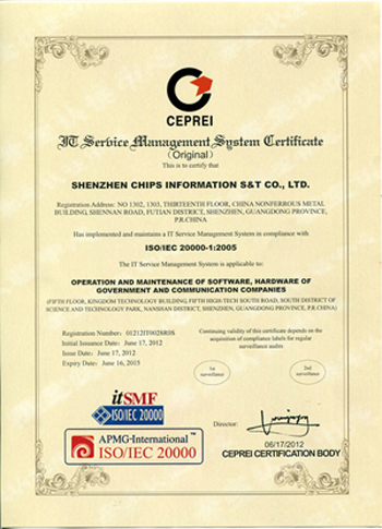 ISO是國際權(quán)威的標準化組織,ISO20000是該組織于2005年12月公布的有關IT服務管理體系的標準文件。ISO20000標準以主動預防性方式,確保通過認證的企業(yè)或組織能夠提供高水平的IT服務滿足客戶和業(yè)務需求。該資質(zhì)的獲得將顯著提升齊普生的市場競爭力和行業(yè)影響力,并為齊普生的業(yè)務發(fā)展帶來更多的機遇。作為國家級國家級高新技術(shù)企業(yè)和專業(yè)的IT服務提供商,獲得ISO20000認證資質(zhì)是齊普生發(fā)展的一座里程碑,標志著齊普生已經(jīng)進入世界具有最高標準IT服務管理水平的企業(yè)行列。